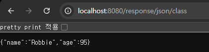 따라서 html 파일이 아닌 JSON 데이터를 브라우저에 반환하고 싶다면 해당 메서드에 @ResponseBody 애너테이션을 추가해줘야 한다.