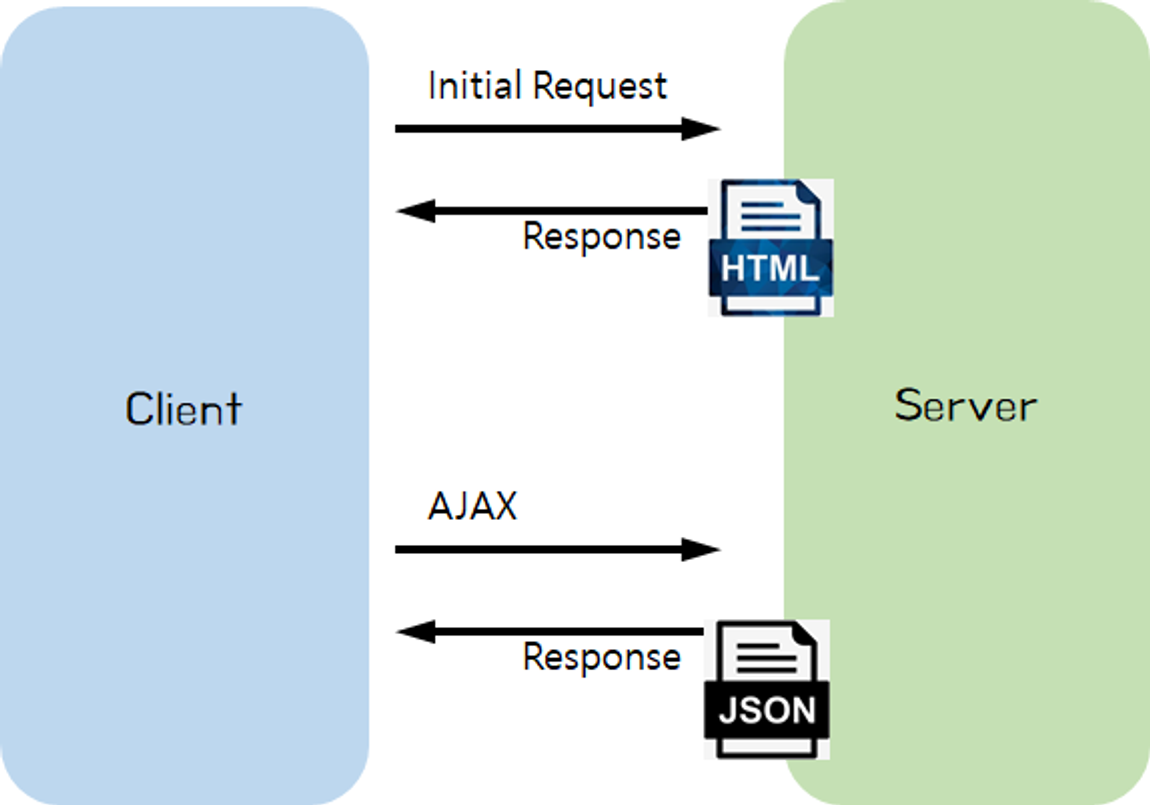 따라서 기본적인 html 파일 요청을 제외하고, JSON 데이터를 요청하는 API를 통해 브라우저에서 html을 조작하여 반영하는 식으로 진행될 예정이다.