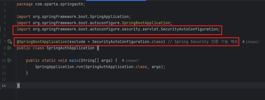 이후에 Spring Security를 배울때 다시 제외한걸 돌려놓을것이다.