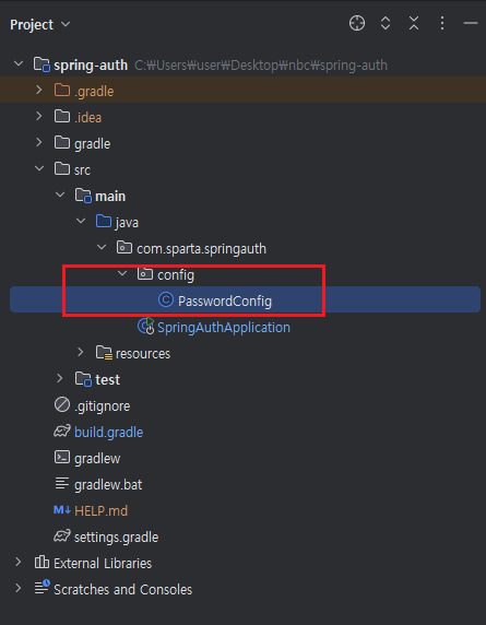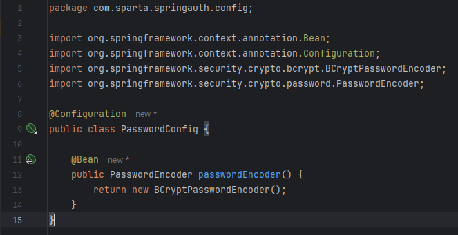 config 패키지 생성 -> PasswordConfig 클래스 생성