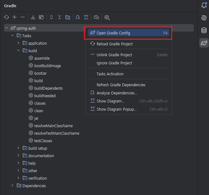 오른쪽에 코끼리모양 Gradle 버튼을 누르고 사진을 따라간다.