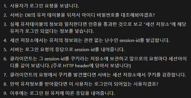 어떻게 비연결성, 무상태 프로토콜에서 "유저가 인증되었다"라는 정보를 유지시켜야 한다는 과제를 어떻게 해결했는지 관점에서 보면 좋다.