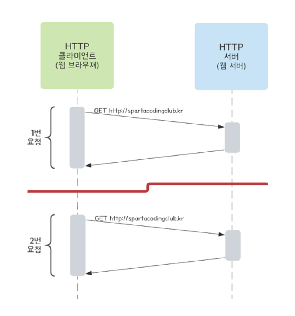 실제로 서버는 클라이언트가 직전에, 혹은 그 전에 어떠한 요청을 보냈는지 관심도 없고 전혀 알지 못한다.