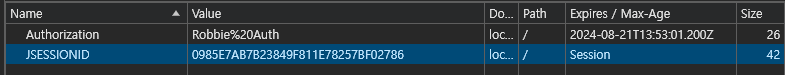 현재 예제에서의 쿠키 값은 "Robbie Auth"이다.
