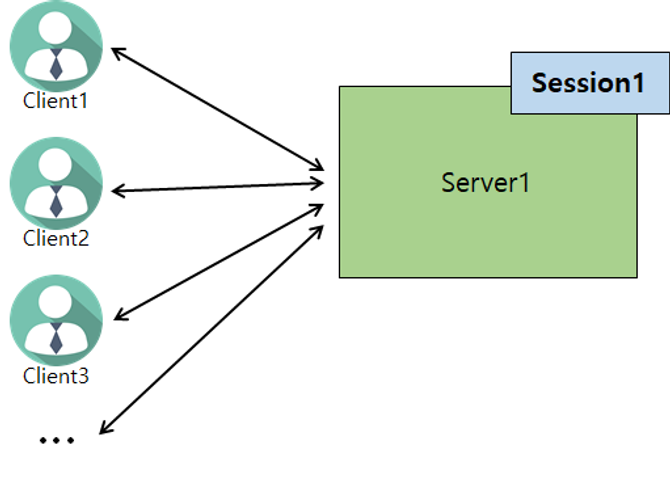 Session1이 모든 Client의 로그인 정보를 소유하고 있다.