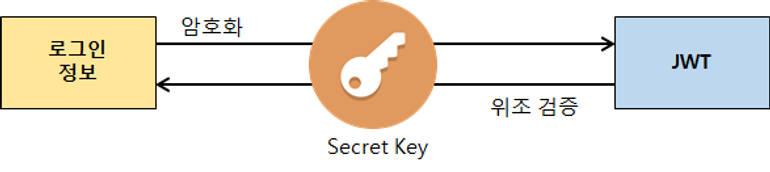 서버에서 "로그인 정보" -> JWT로 암호화 (Secret Key 사용)