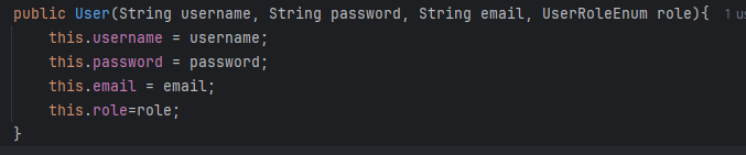 User user = new User(username, password, email, role);