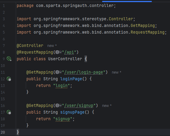 UserController 클래스로 이동한다.