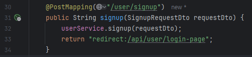 userService를 통해 회원가입이 성공하면 로그인을 하라는 뜻에서 로그인 페이지로 리다이렉트 해준다.