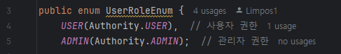 Enum의 이름이란 enum에서 USER과 ADMIN을 뜻한다.
