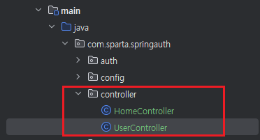 controller 패키지를 만들고 HomeController, UserController 클래스를 만든다.