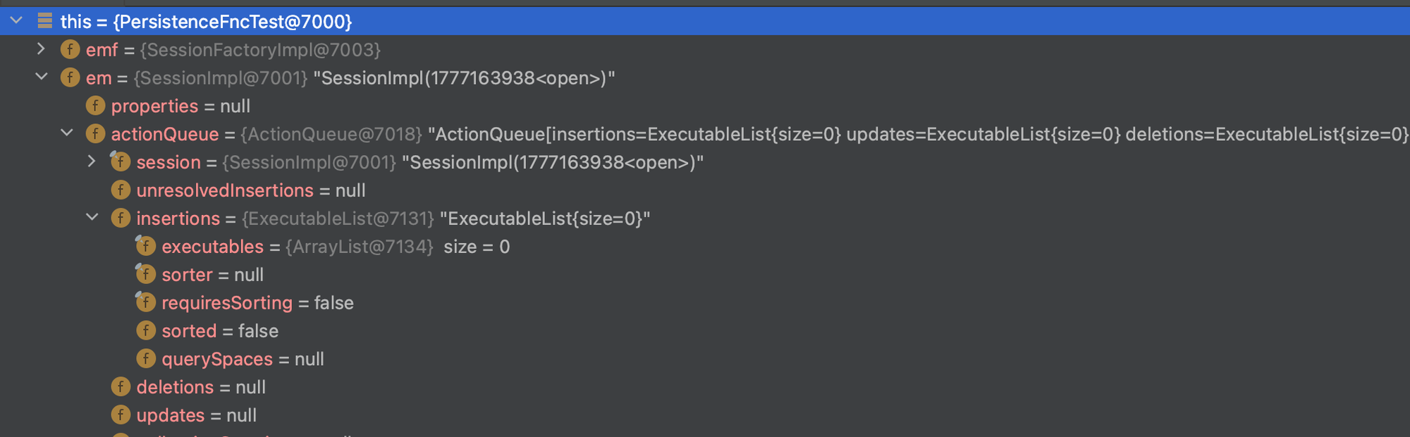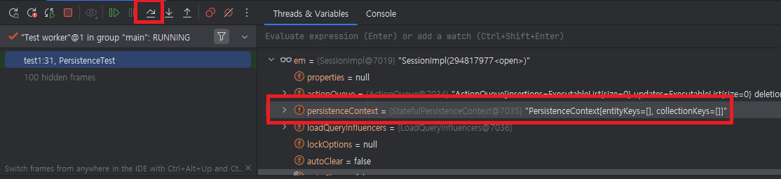 그리고 persistenceContext를 보면 entityKeys와 collectionKeys가 비어있다.