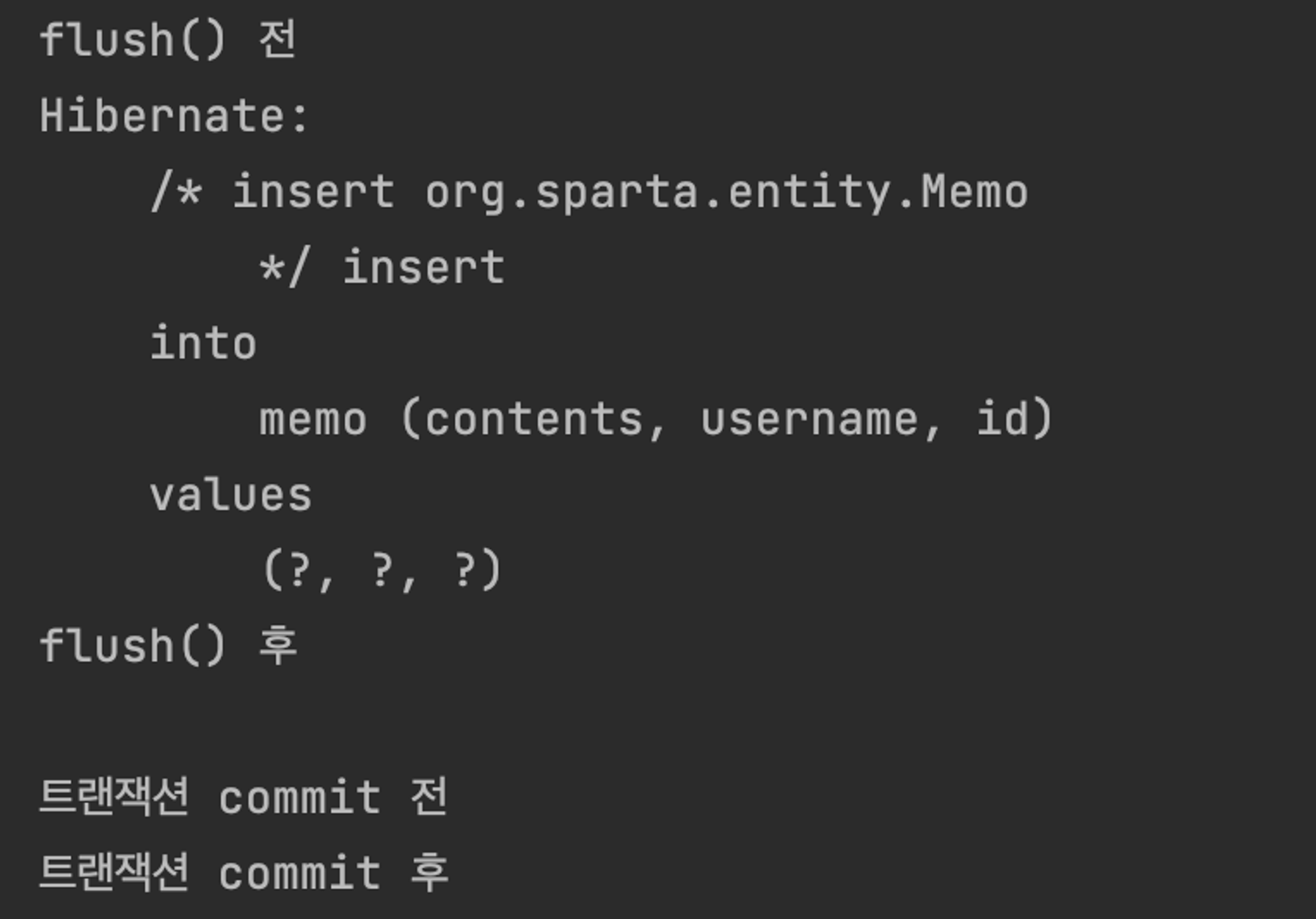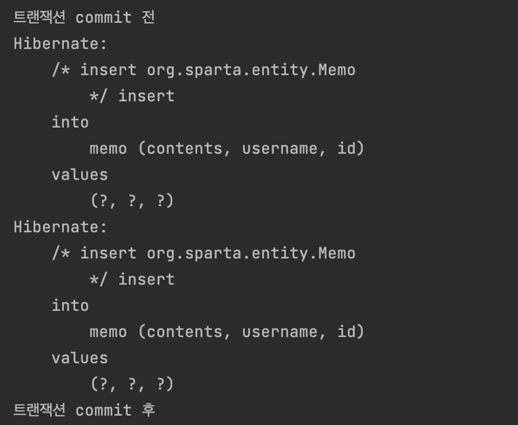 JPA는 이를 구현하기 위해 쓰기 지연 저장소를 만들어 SQL을 모아두고 있다가 트랜잭션 commit 후 한번에 DB에 반영한다.