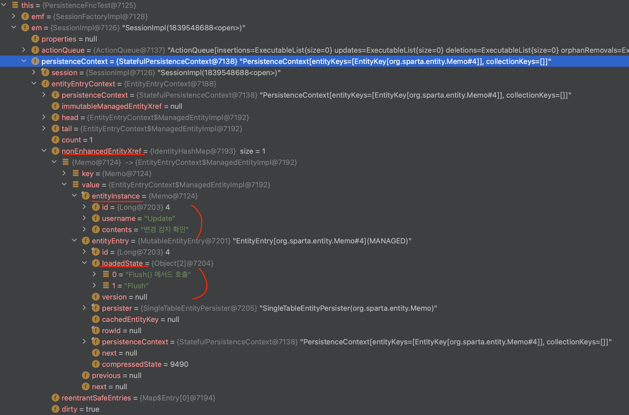 entityEntry > loadedState는 조회했을 때 즉, 해당 Entity의 최초 상태이다.