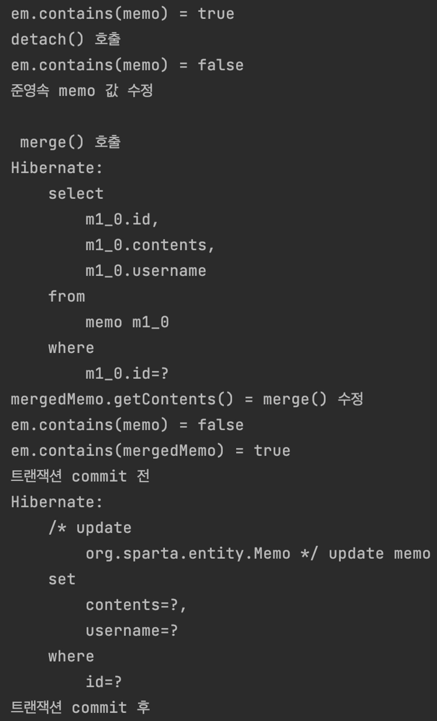 준영속 상태의 memo의 값을 수정한 후 memo 객체를 사용해서 merge() 메서드를 호출했다.