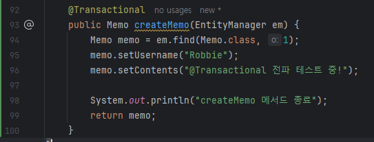 이 코드는 트랜잭션이 적용되어있지 않기 때문에 메모 생성 실패한다.