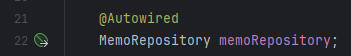 지금 @Autowired를 통해 MemoRepository를 주입받았다.