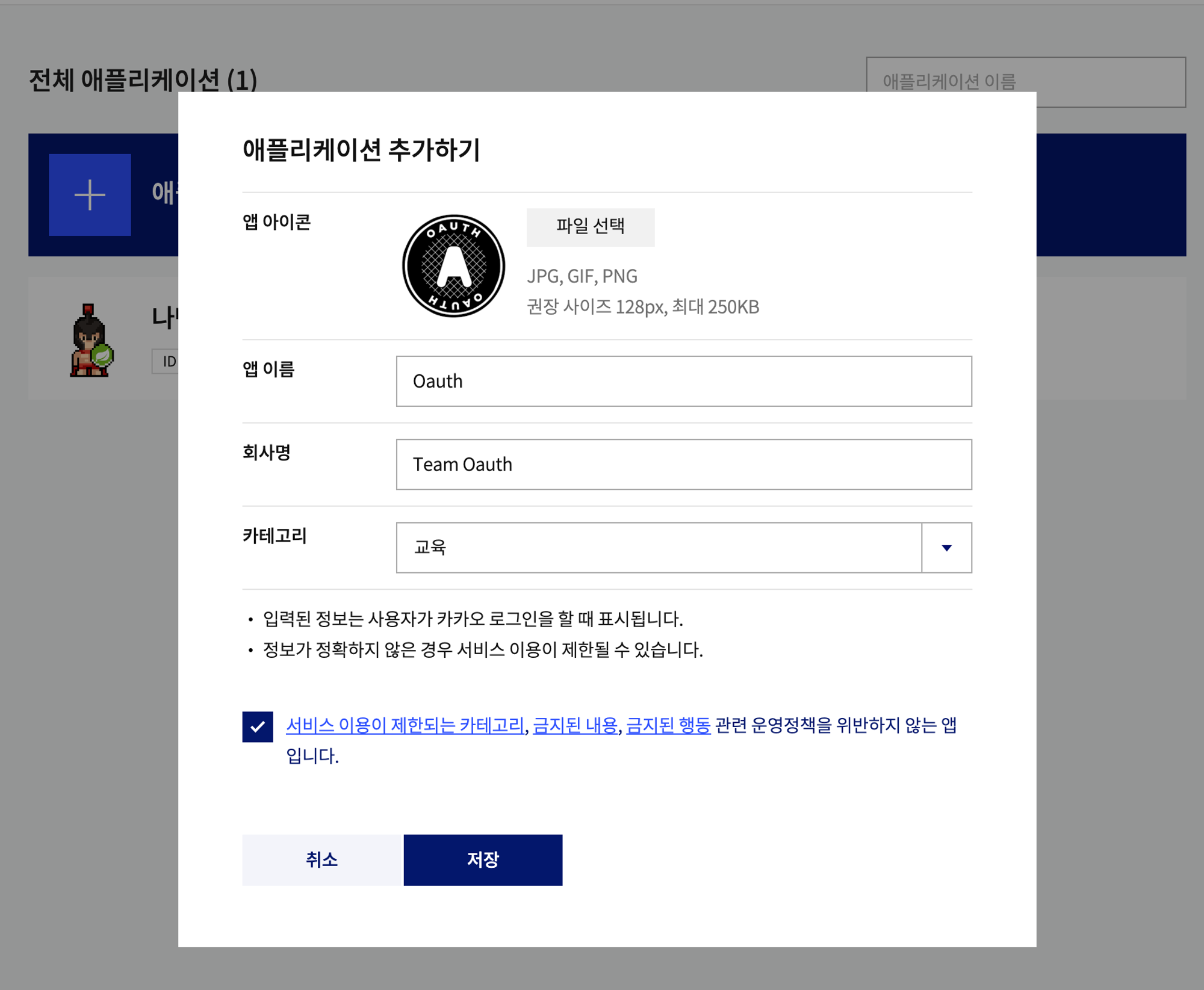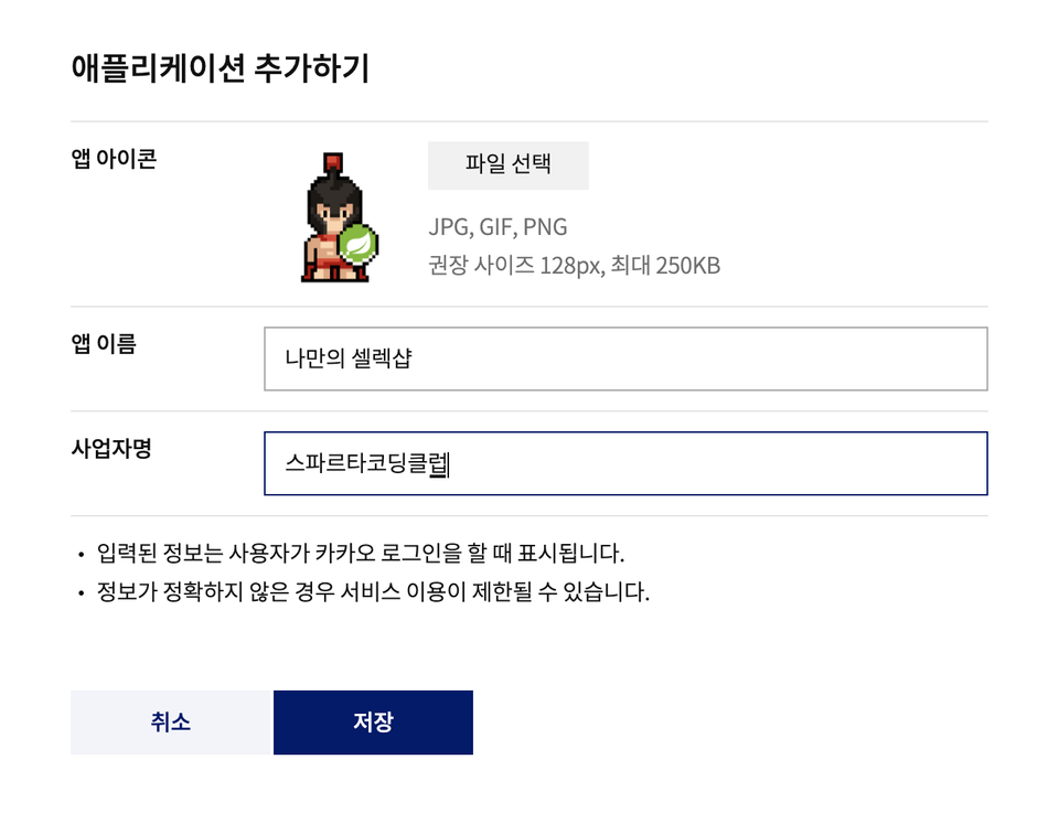3. 앱 아이콘, 앱 이름, 사업자명 저장