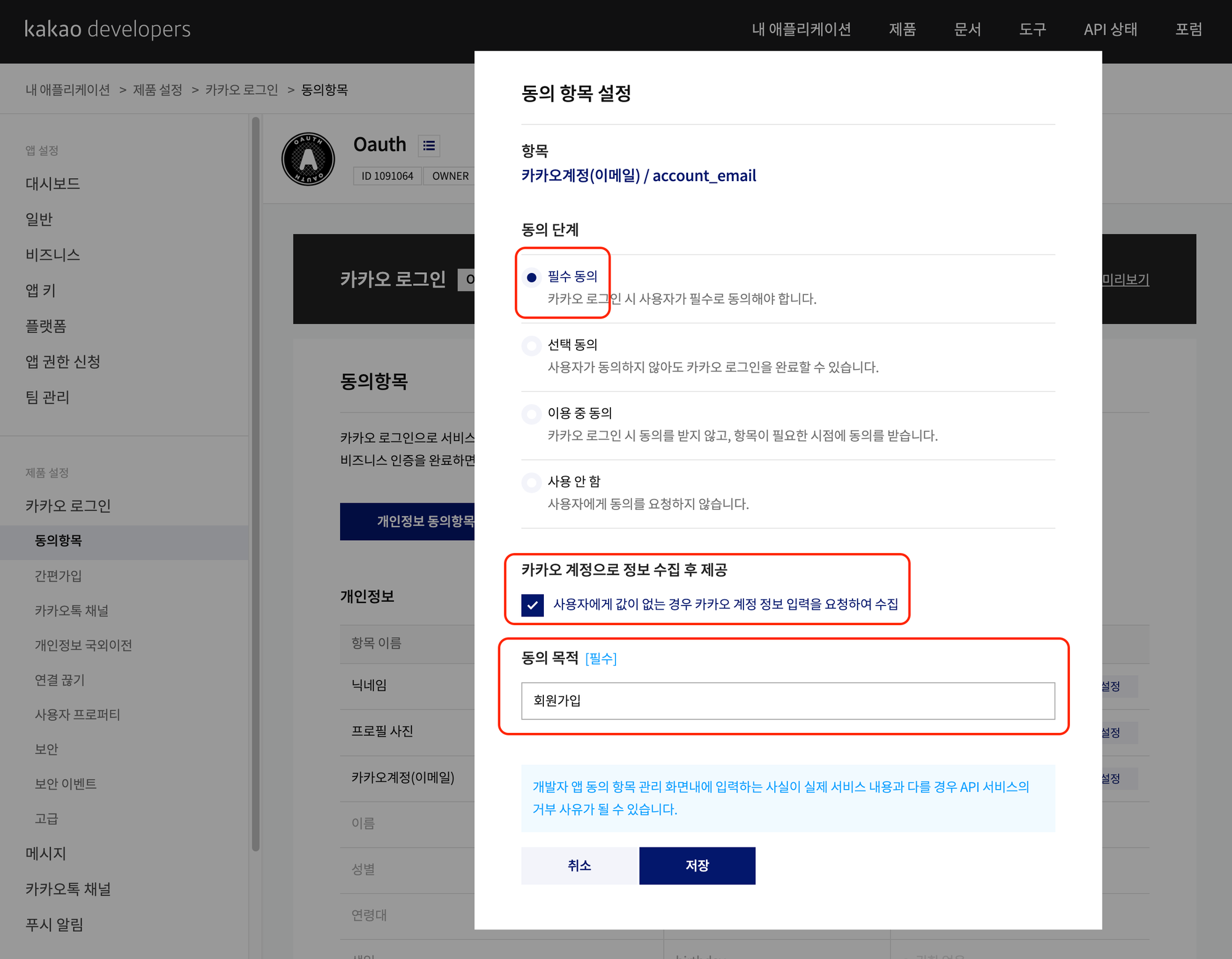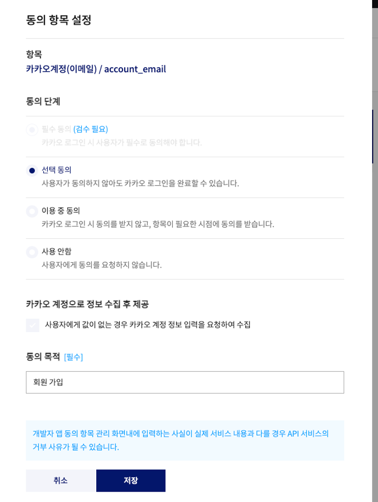 카카오 계정(이메일)정보를 '선택 동의'로 받는다.