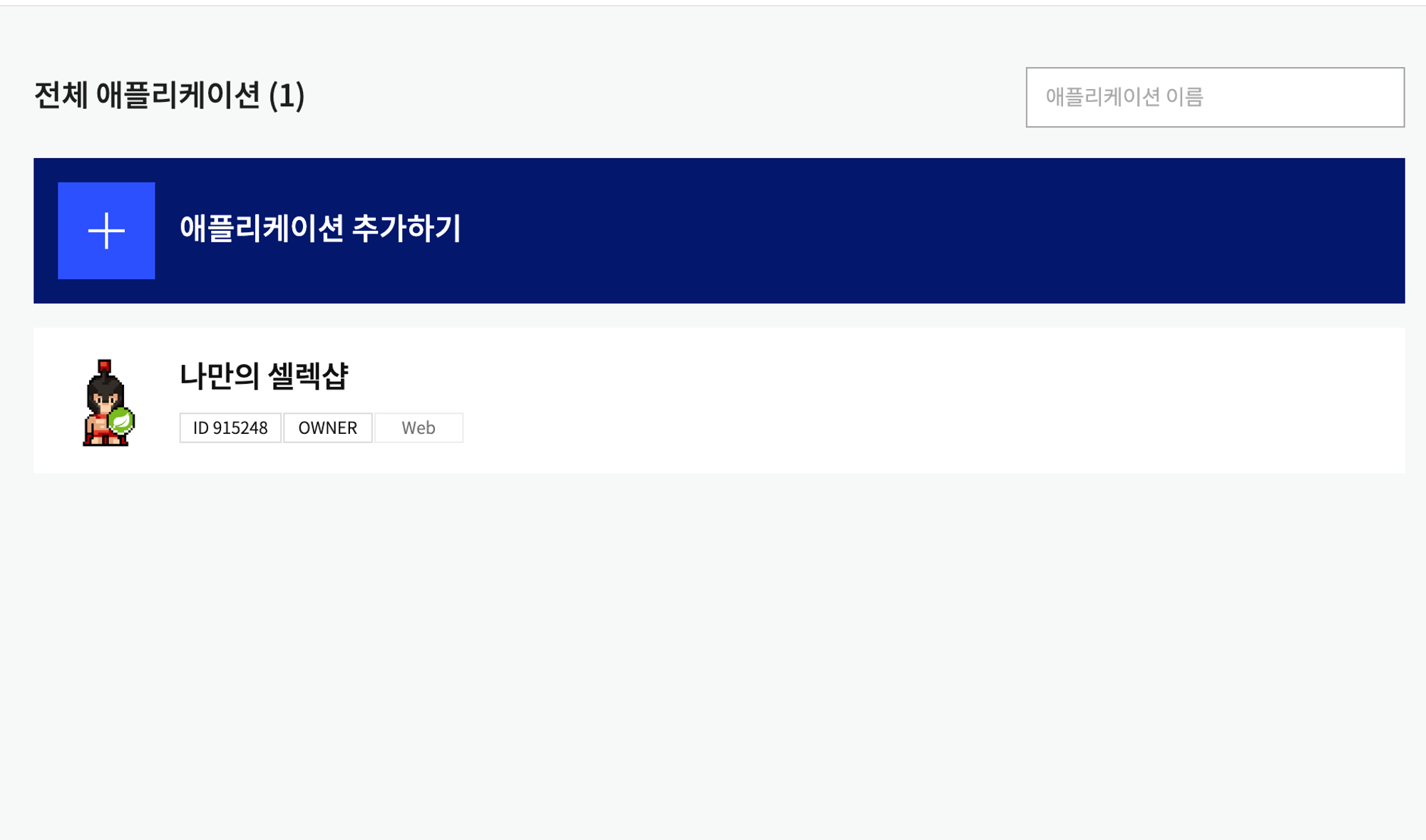 2. 내 애플리케이션 메뉴 선택 > 애플리케이션 추가하기