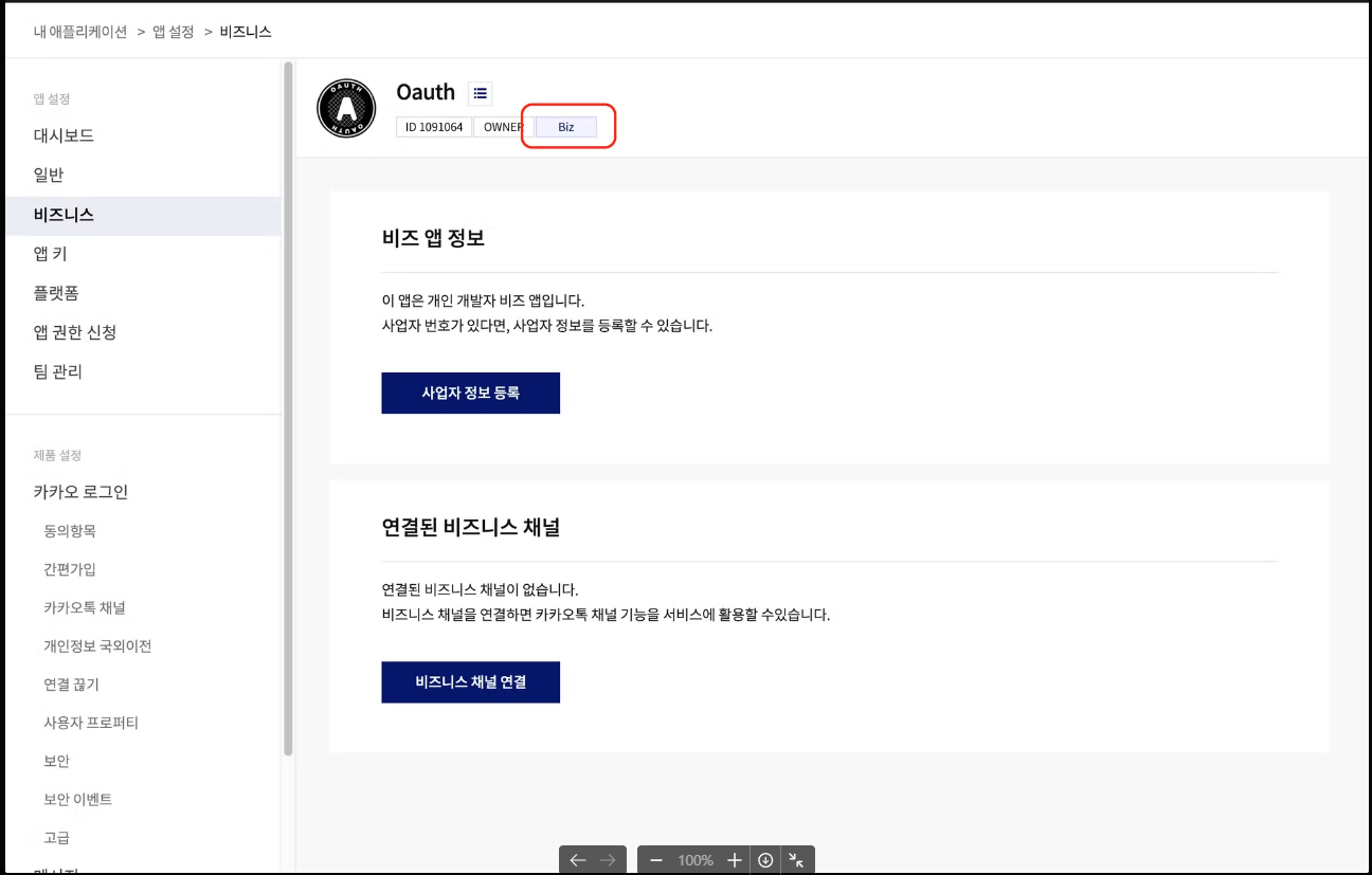 개인 개발자 비즈 앱 → 개인 개발자 비즈 앱 전환 진행
