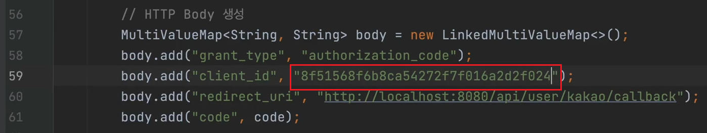 이 값은 아까 REST API 키 값을 복사한 값이다 여기에도 붙여넣어 준다.