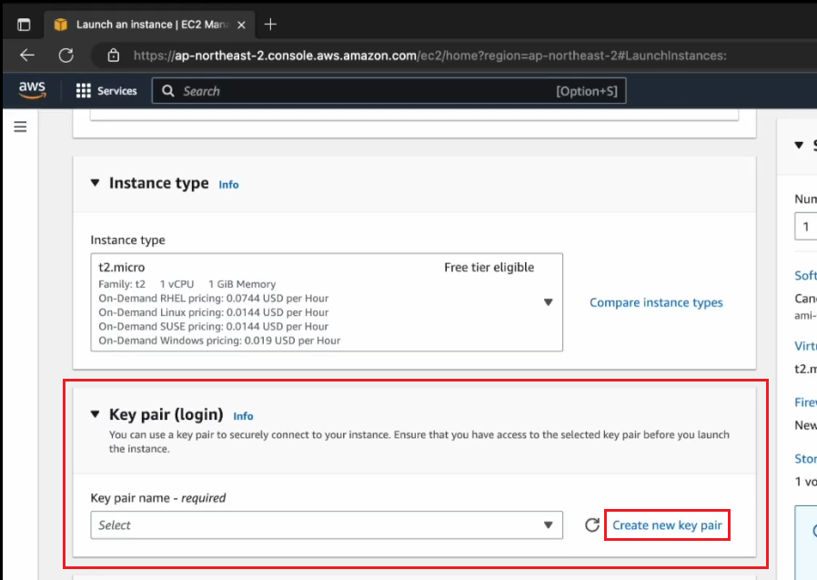 Private key file format : 어떤 파일로 저장할것인가 .pem 파일과 .ppk 파일이 있다. 여기선 pem으로 사용한다.