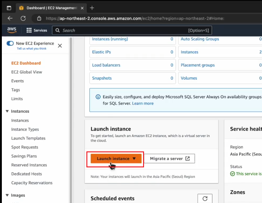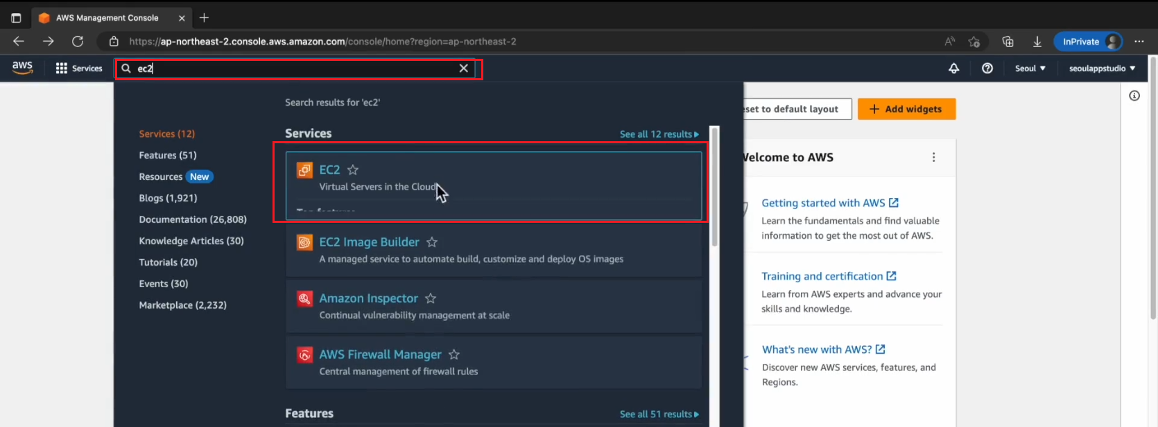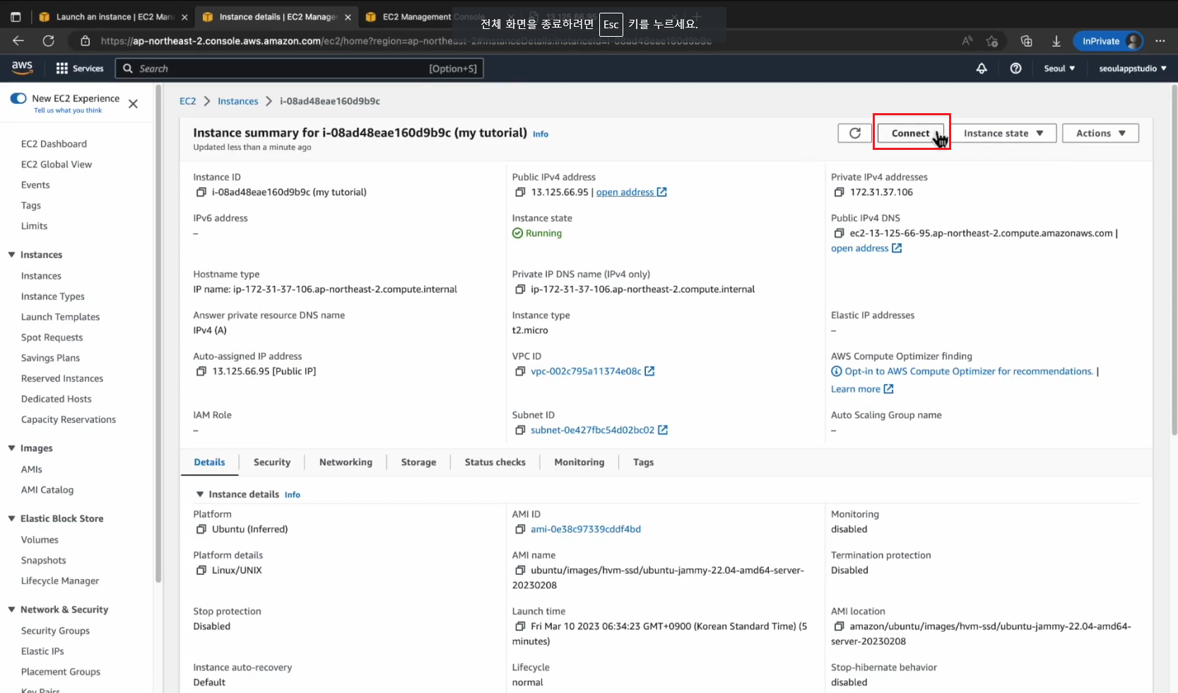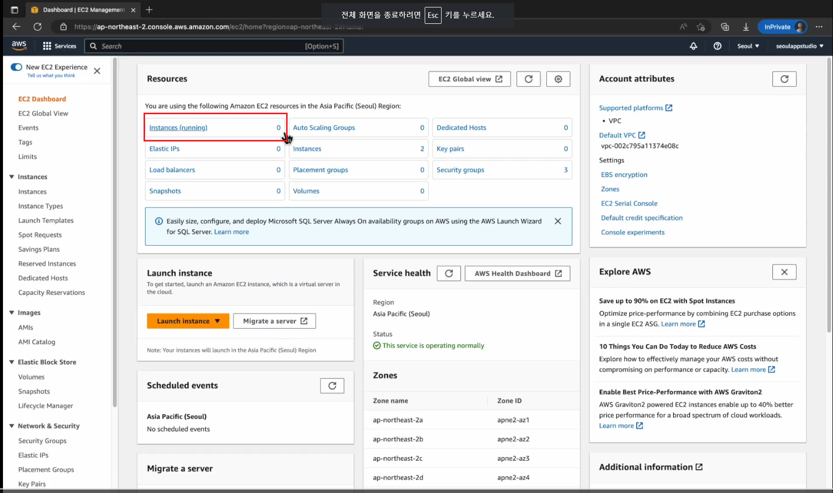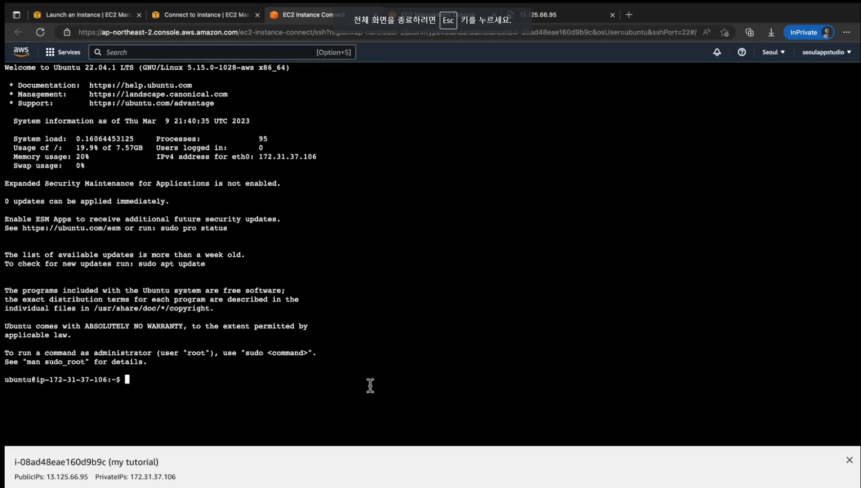 현재 화면은 우리 컴퓨터가 아니라 서울에 있는 AWS 데이터 센터에 있는 컴퓨터다.