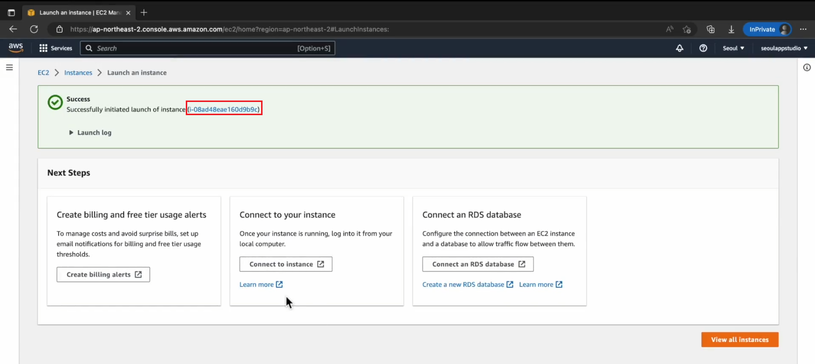 다른 설정들도 있지만 여기까지만 해서 인스턴스를 만들었다.