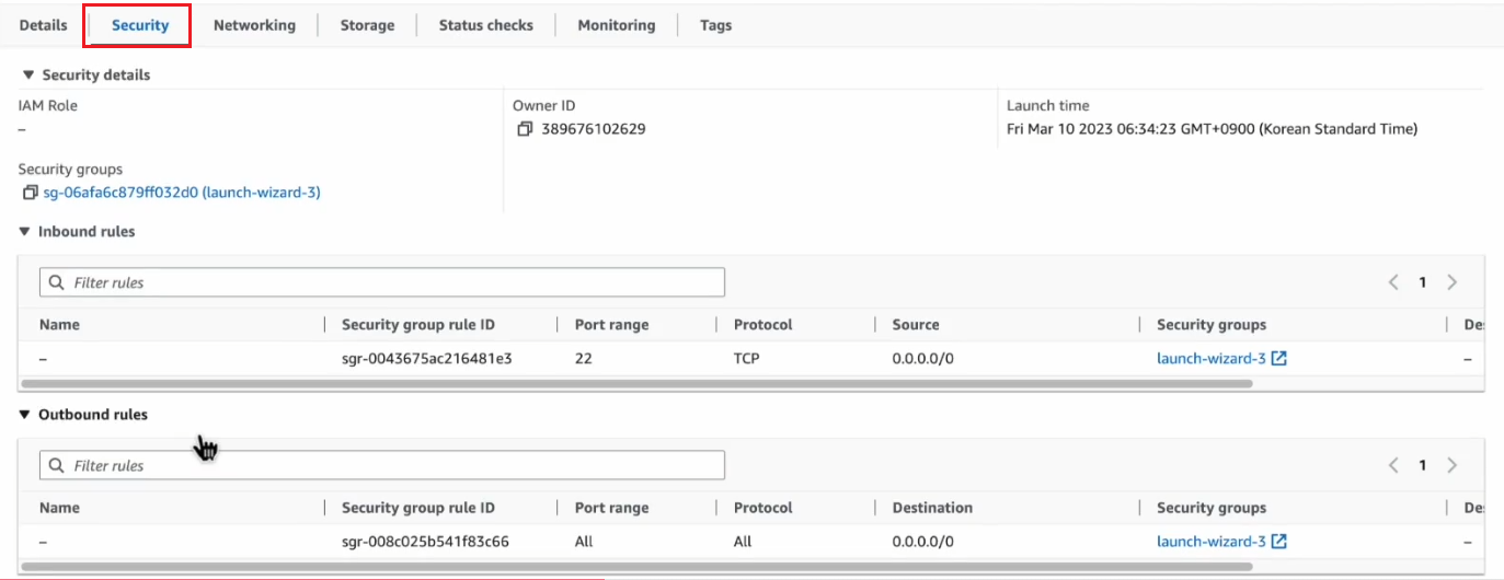 Outbound rules : 인스턴스에서 외부로 나가는 규칙
