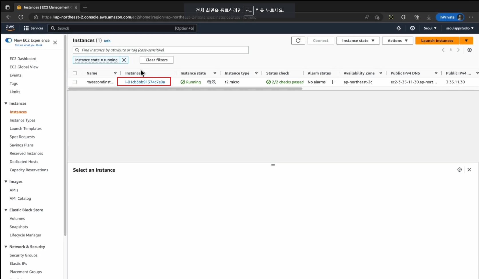 EC2 대쉬보드로 들어와서 Instances 들어가기