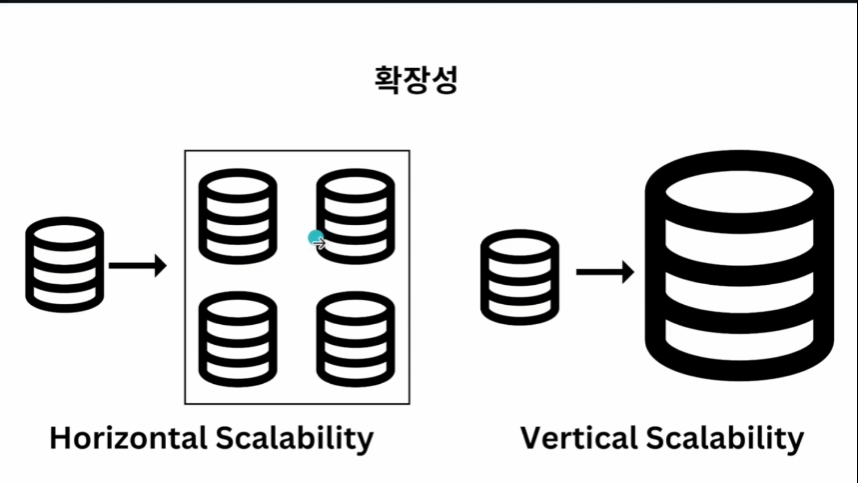 - 그림에서 하나의 작은 데이터베이스가 더 크고 성능이 좋은 데이터베이스로 확장되는 모습으로 표현되어 있습니다.